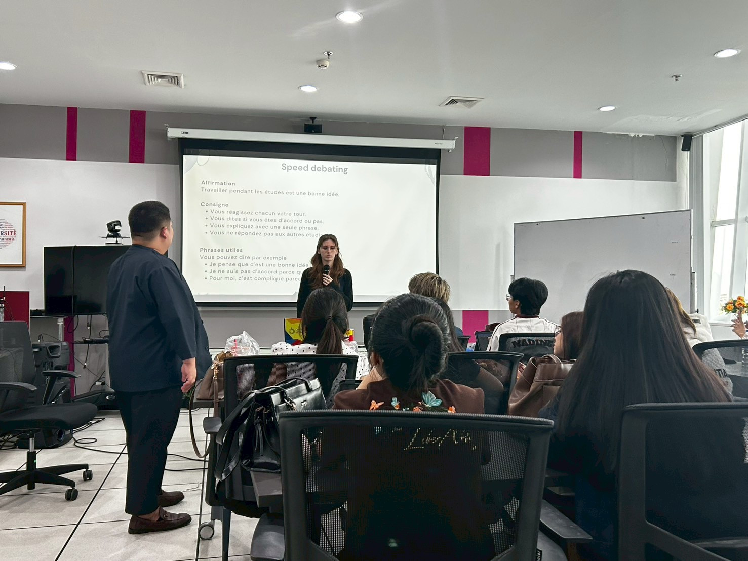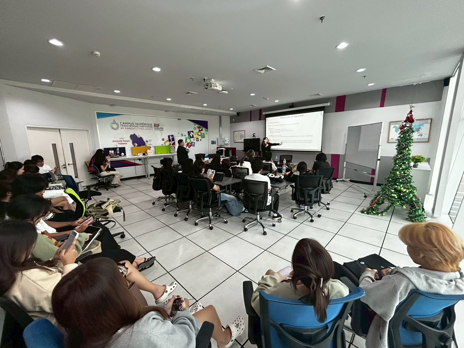 DÉBAT EN FRANÇAIS Le 11 février 2026, nos étudiants francophones ont participé à la première séance consacrée aux bases théoriques du débat : structurer une argumentation pratiquer l’écoute active développer l’esprit critique gagner en confiance à l’oralCette première étape a permis aux participants de mieux comprendre les techniques et les stratégies du débat. Prochaine étape : place à la compétition !Rendez-vous le 25 février 2026 pour le Débat en français – version compétition, où nos étudiants mettront en pratique leurs compétences dans un véritable affrontement d’idées.Restez connectés et venez les encourager !. Salle du CEF Bangkok 11 février 2026