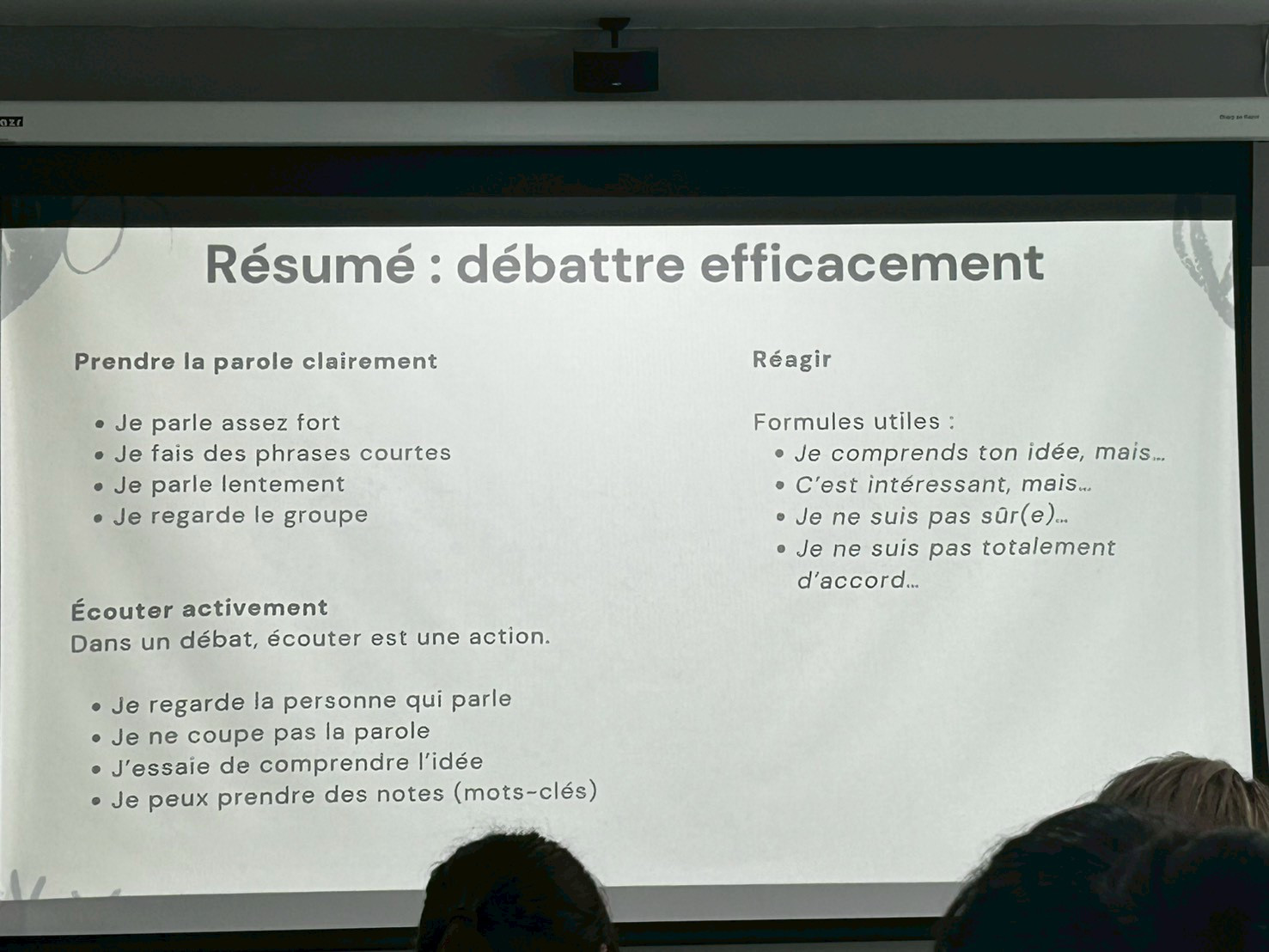 Cette première étape a permis aux participants de mieux comprendre les techniques et les stratégies du débat.