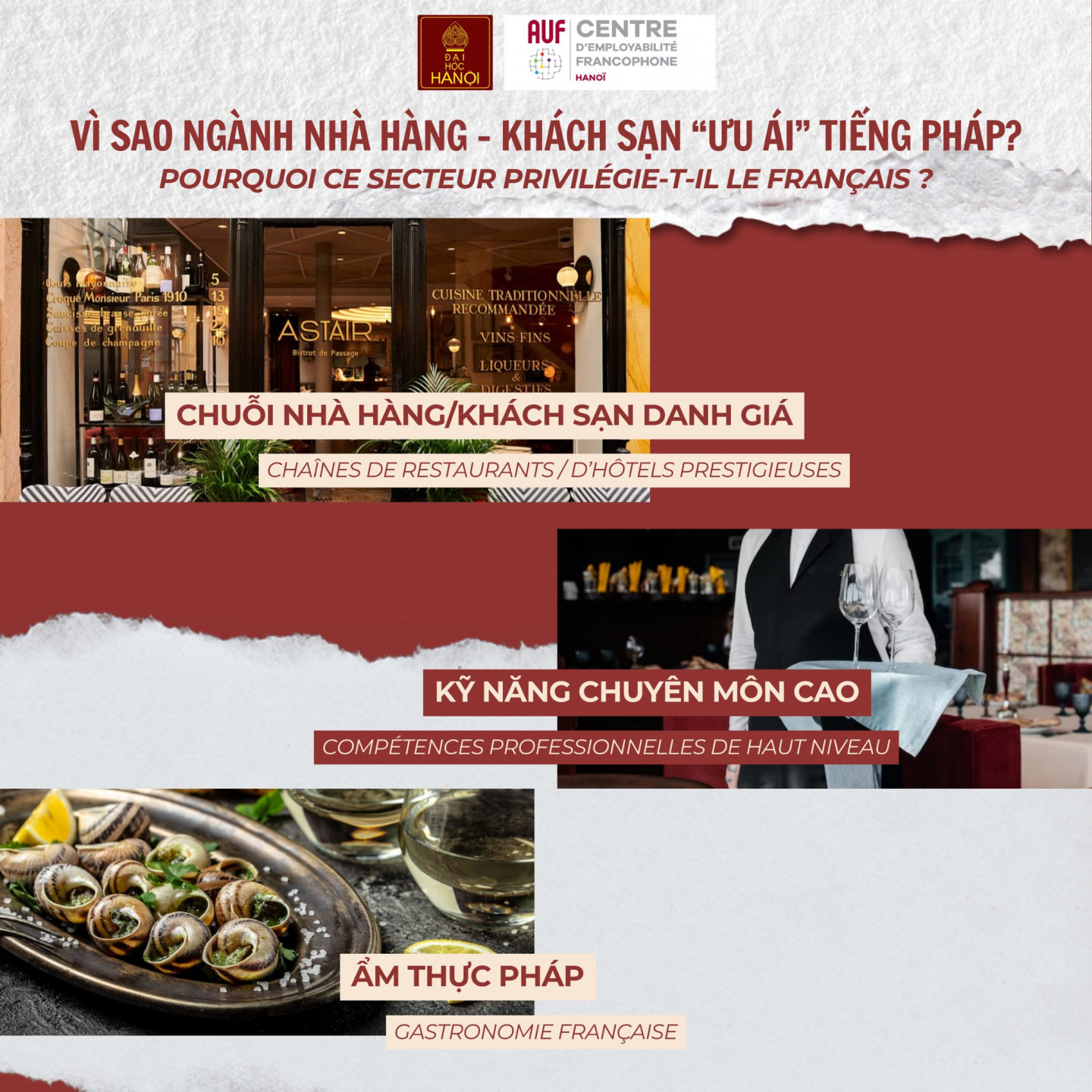 Et pour ce troisième épisode, CEF vous invite à explorer le domaine de la restauration et de l’hôtellerie - un secteur encore assez rare au Vietnam, mais qui occupe une place particulièrement importante dans de nombreux pays européens, notamment en France.