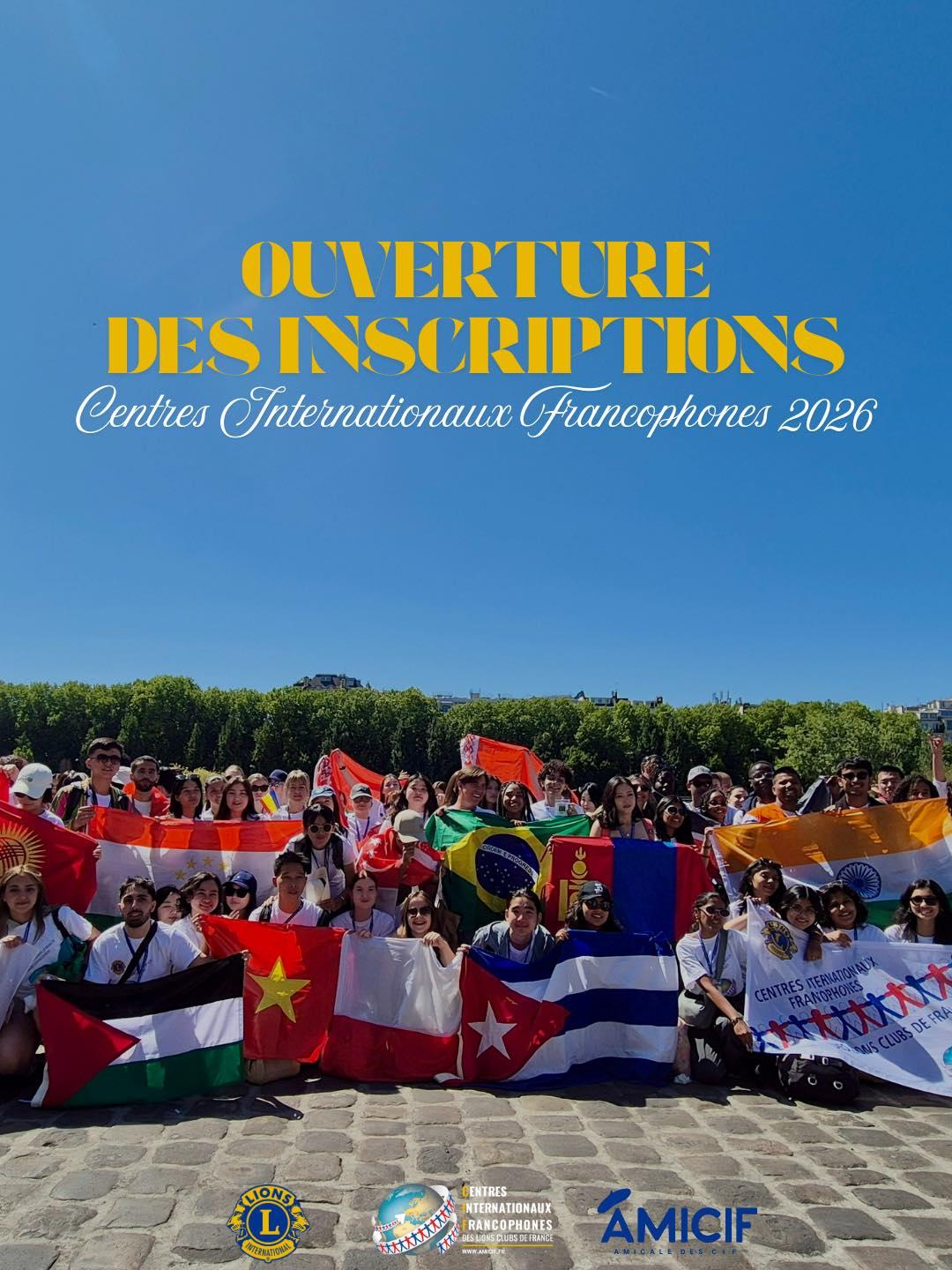 Les inscriptions pour les Centres Internationaux Francophones des Lions Clubs de France 2026 sont OUVERTES Rendez-vous en juillet 2026 pour une immersion francophone inoubliable : 5 Centres Pour les francophones de 18 à 24 ans Du samedi 4 juillet au mardi 28 juillet 2026 Date limite d’inscription : 15 février à minuit (heure française). Toutes les informations pratiques sont disponibles sur www.cif-francophonie.fr Anciens des CIF, vous avez la possibilité de faire découvrir cette aventure à vos proches en les parrainant ! Alliances Françaises, vous pouvez également recommander vos élèves et leur offrir une expérience francophone exceptionnelle !Prenez le temps de consulter les modalités, préparez soigneusement votre dossier et lancez-vous !AMICIF
