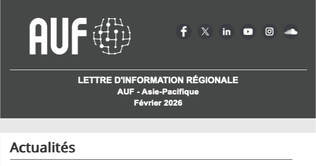 📧 La lettre d’information de l’AUF - Asie-Pacifique pour le mois de février 2026 est disponible !